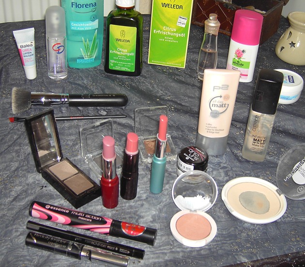 Ich bin im Moment ziemlich “langweilig” was mein MakeUp angeht, es sind so ziemlich immer die gleichen 3-4 Catrice Lidschatten (Duo 080 Help! I am stranded, Mono 070 Mr. Copper’s Field, 130 Sitting on a Volcano), das gleiche MNY Blush (305A) und die gleichen Lippenstifte ( Alterra 06 Coral, Catrice Stay On 070 lasting dream, Catrice absolute moisture 030 spicy coral).